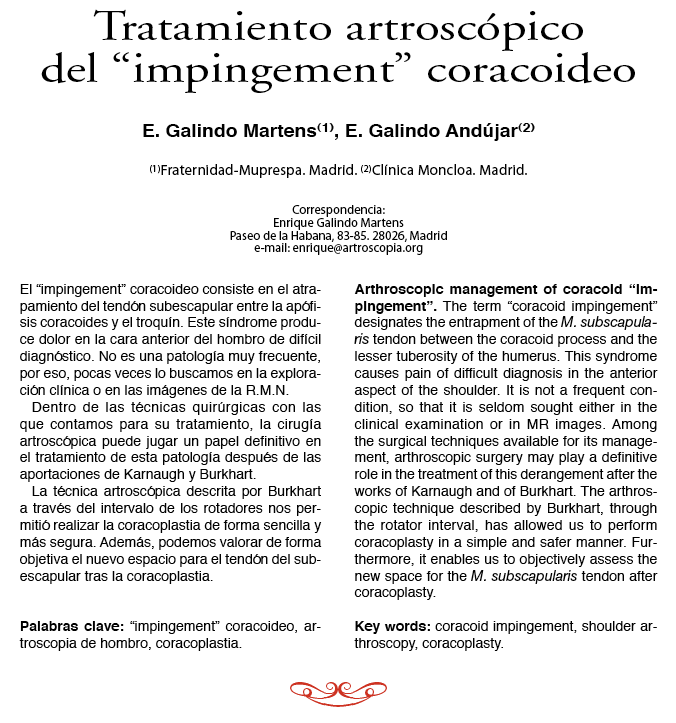 El Síndrome Subcoracoideo produce dolor de hombro resistente a los tratamiento convencionales